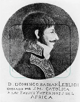 Aunque nunca puso un pie en la universidad, como autodidacta alcanzó a ser un erudito, una especie de hombre del Renacimiento que dominó mil materias: dibujo, geografía, botánica, cartografía, astronomía... Ilustrado y aventurero, investigador y liante, Badía fue un tipo obsesivo cuyos proyectos rayaban en lo estrambótico si no en lo disparatado. Su transformación en Alí Bey el-Abbassí, príncipe sirio descendiente del profeta, sucede en 1803, cuando Godoy lo envía a Marruecos como espía de la corona. En su papel de notable musulmán (para el que no tuvo reparos en circuncidarse) recorrió el país durante dos años, de Tánger a Mogador y de Rabat al Atlas, hasta ser invitado a marcharse por las sospechas sobre su verdadera identidad. La cantidad de información (notas, ilustraciones, mapas...) que reunió y los episodios que vivió merecen bastante más que una triste placa en una esquina.