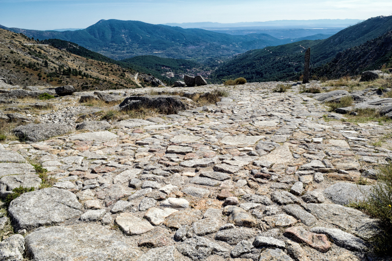 Siendo yo viajero de la máxima garantía, me adorna la costumbre de profundizar en las honduras de ciertos lugares hasta límites rayanos en la demencia. El camino del Puerto del Pico, por ejemplo. Enredando entre lecturas descubro que este camino, considerado calzada romana desde antiguo, podría tener raíces más superficiales. Moreno Gallo, experto en ingeniería antigua, no sólo duda sino que niega su romanidad. Asegura que es una senda ganadera del siglo XIX. No son endebles sus argumentos. Al contrario, resultan difíciles de rebatir porque los sustenta la lógica: no hay carro, ni siquiera moderno, que pueda subir estas pendientes empedradas; y bajarlas sin despeñarse, menos aún. Es propia de las épocas decadentes la manía de antedatar las cosas a un periodo que se juzga más glorioso. Son como los ceros, que no teniendo valor por sí mismos, lo reciben de la cifra que les precede.